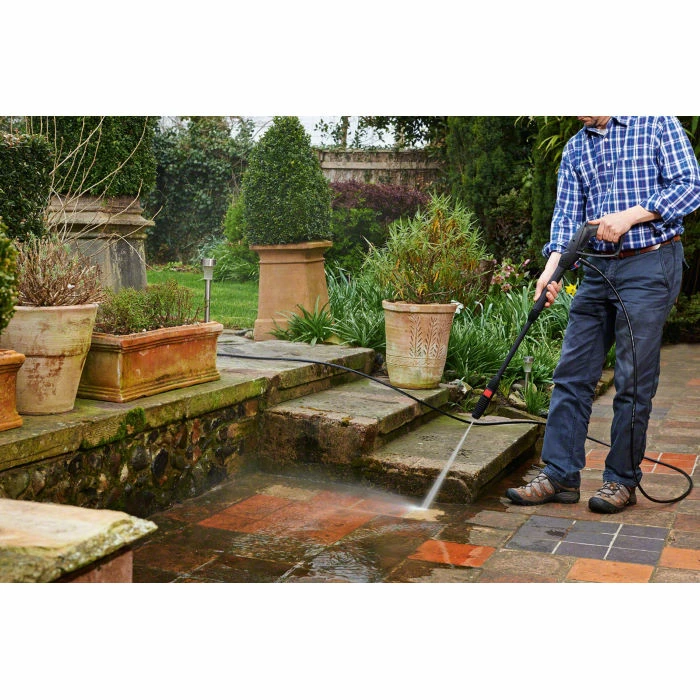 Lightweight design with accessory storage makes it easy to move between different cleaning areas. The high-pressure hose, gun, and detergent nozzle can be stored on the machine, perfect for storage in small homes.