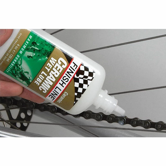 Every time you use Ceramic Wet, it builds a ceramic coating into frictional surfaces that results in increasingly smoother performance. Ceramic coating allows the chain to run extremely clean since dirt does not stick to it easily.