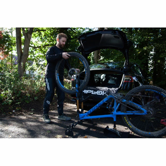 The Hiplok Flipstand’s small dimensions and lightweight nature make it ideal for weekend riding or racing trips as well as an alternative to larger, more expensive bicycle stands. Ideal for punctures, bike cleaning and general maintenance, Flipstand prevents damaged controls and dirty grips as well as protecting your saddle and improving stability of bike when upside down.