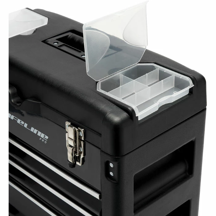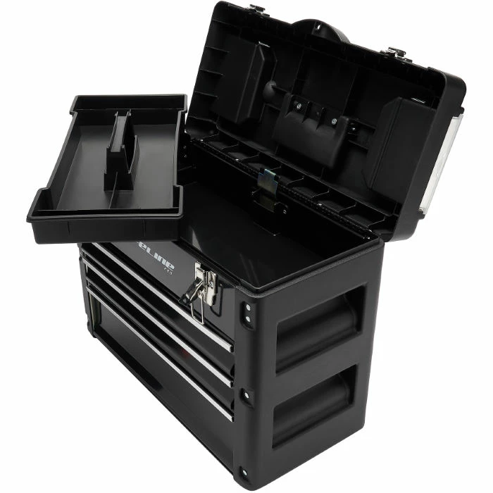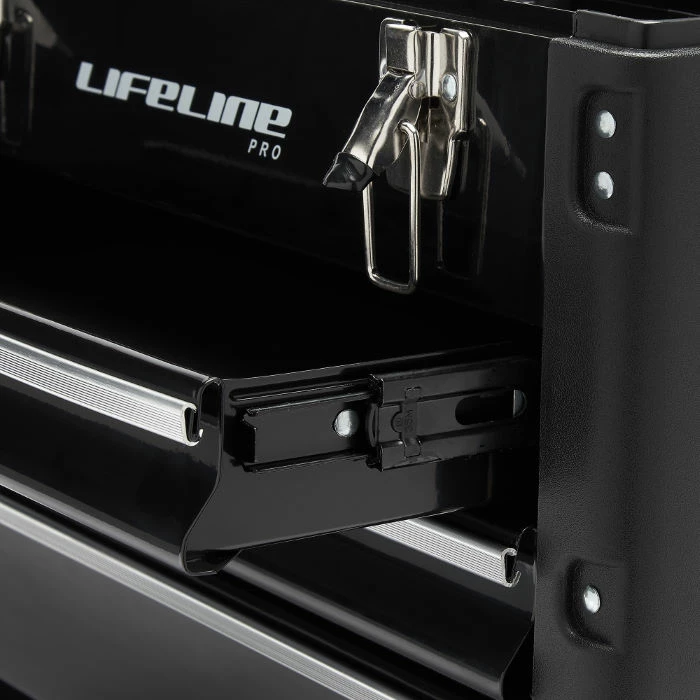 The LifeLine Pro 3 Drawer Work Station comes with 2 shallow drawers and 1 deep. In addition, lift the lid and you’ll find a tool tray and another large storage compartment.