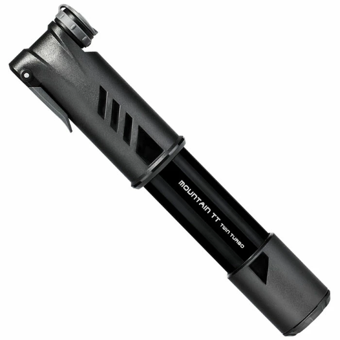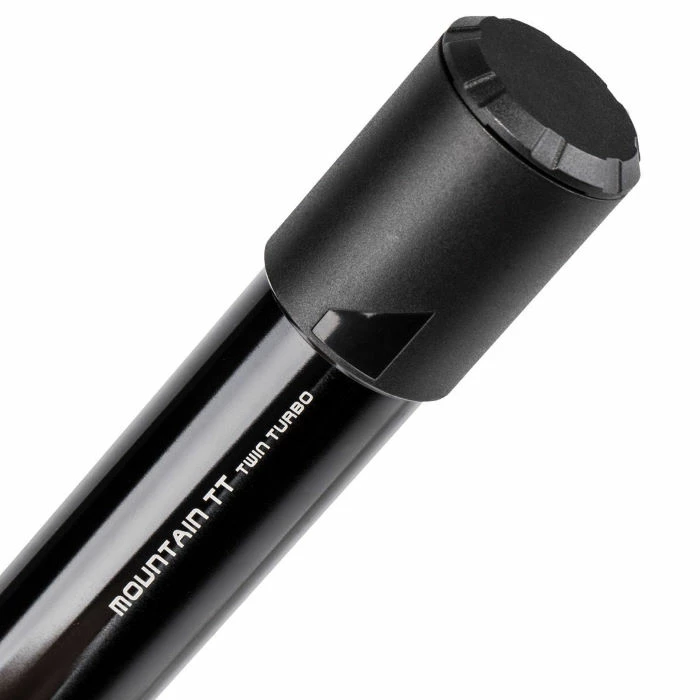 Mountain TT Twin Turbo pump fills both large volume fat bike tyres and higher-pressure MTB (mountain bike) tyres, as well as gravel, touring, trekking bike tyres with ease. TwinTurbo technology uses both strokes to compress air to deliver the high-pressure output and saves time and effort. Integrated dust cap keeps pump head clean and thumb lock lever ensures an air-tight seal.